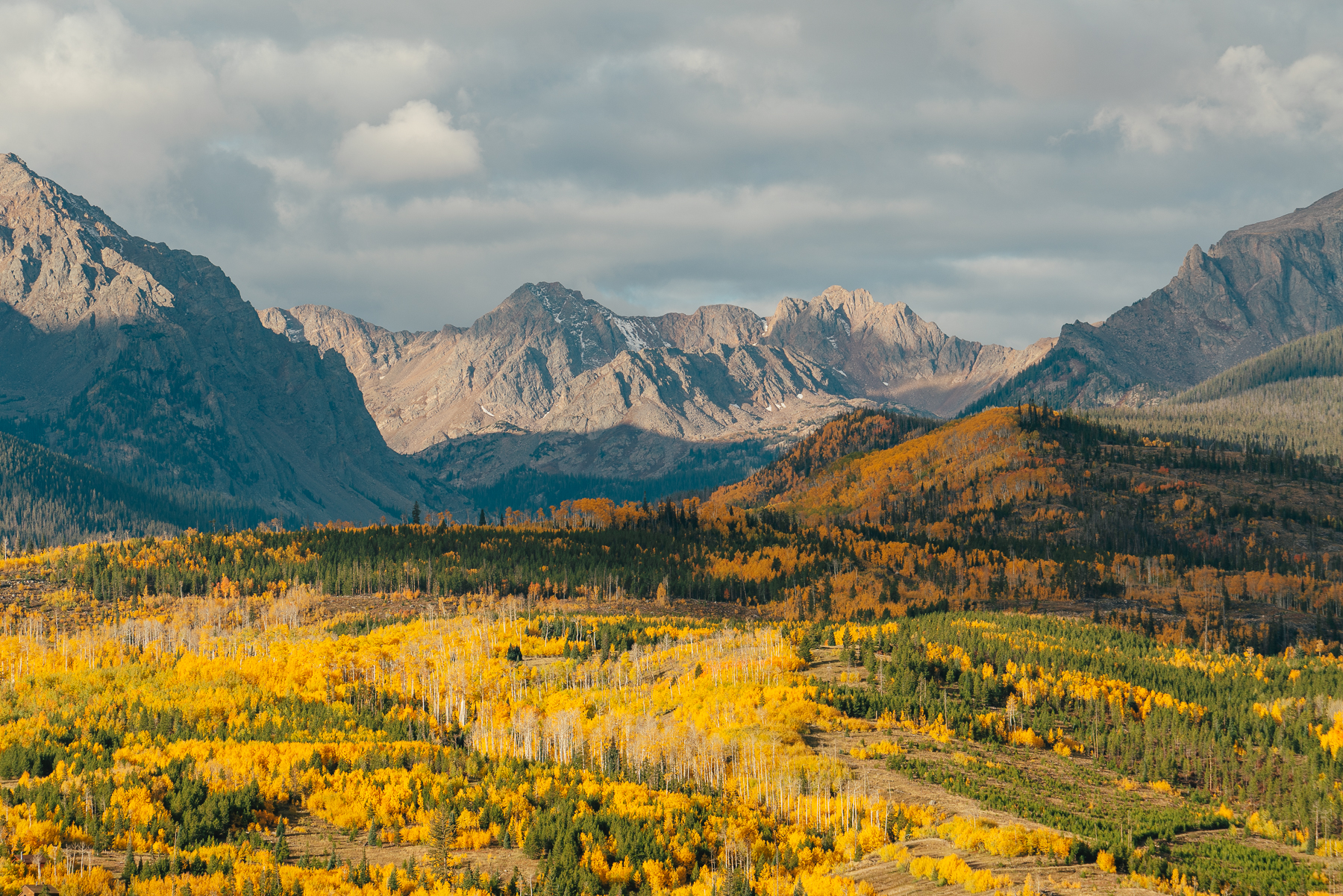 33 » Back with a (cozy) vengeance Hey sweater-clad friends, My name is Alex and you're reading Stillnotes, a photo newsletter you subscribed to, likely a while ago, about life seen through the still image. I share notes on stills, if you will. Throw on your coziest oversized sweater, grab a coffee, and lets chat through a crisp fall morning photo outing. The above image was taken Monday morning this week. I am still on a high from it. Fall is peaking right now in the Colorado mountains, it's an incredible foliage year with more reds than I've ever seen here, and my first sunrise out in a long time paid off in spades. This is one of my favorite images I've captured in a long time. A few technical details: It's a 5 shot panorama taken on my 70-200. Vertical images sweeping across the range, stitched together in Lightroom with a simple edit to start. I'm really happy with just about everything here, the small ridge of trees in the lower left foreground providing depth, the distinct line of light across the mountains, and the clouds providing a dense but colorful ceiling. I punched up the shadows to give a little space for the immense amount of aspens below the peaks, but didn't go full HDR. I'm constantly torn between the HDR look that seems to be popular in landscape and my typical lean which is more towards natural film-esque looks. I loaded up Scout around 6am and headed to the trailhead, just a 20 minute drive away. A rushed but otherwise peaceful hike up brought us to a large clearing on a plateau overlooking all of the eastern Gore Range and north towards Ute pass. This time of year is a blessing and a curse in terms of sunrise timing. Later sunrise means easier wake ups, but I miss the long summer days and late sunsets. This is the best time of year in Colorado, so I'm enjoying the short few weeks this lasts. I frantically shot as the light hit, then fed Scout his breakfast and relaxed once the sun got lost in the cloud layer and the light disappeared. This time post-shoot is always interesting when you're out in the field. I was flying on how amazing the morning was, worried I'd messed something up technically in my rush, and finally stepping back to take it all in and breathe. Some might say that frantic shooting portion during the good light ruins your personal experience, but thats not how I feel. It's a rush. It's a moment you hope for coming together requiring fast execution. I took some time to explore the area, including some groves I want to come back and shoot at sunset. Then I headed back down to the trailhead, getting home in plenty of time for my morning meetings. A few more shots from the morning (caption links to expand and view larger): I hope 2025 has been treating you well. Keep it cozy, and I'll be back soon with more. —Al |